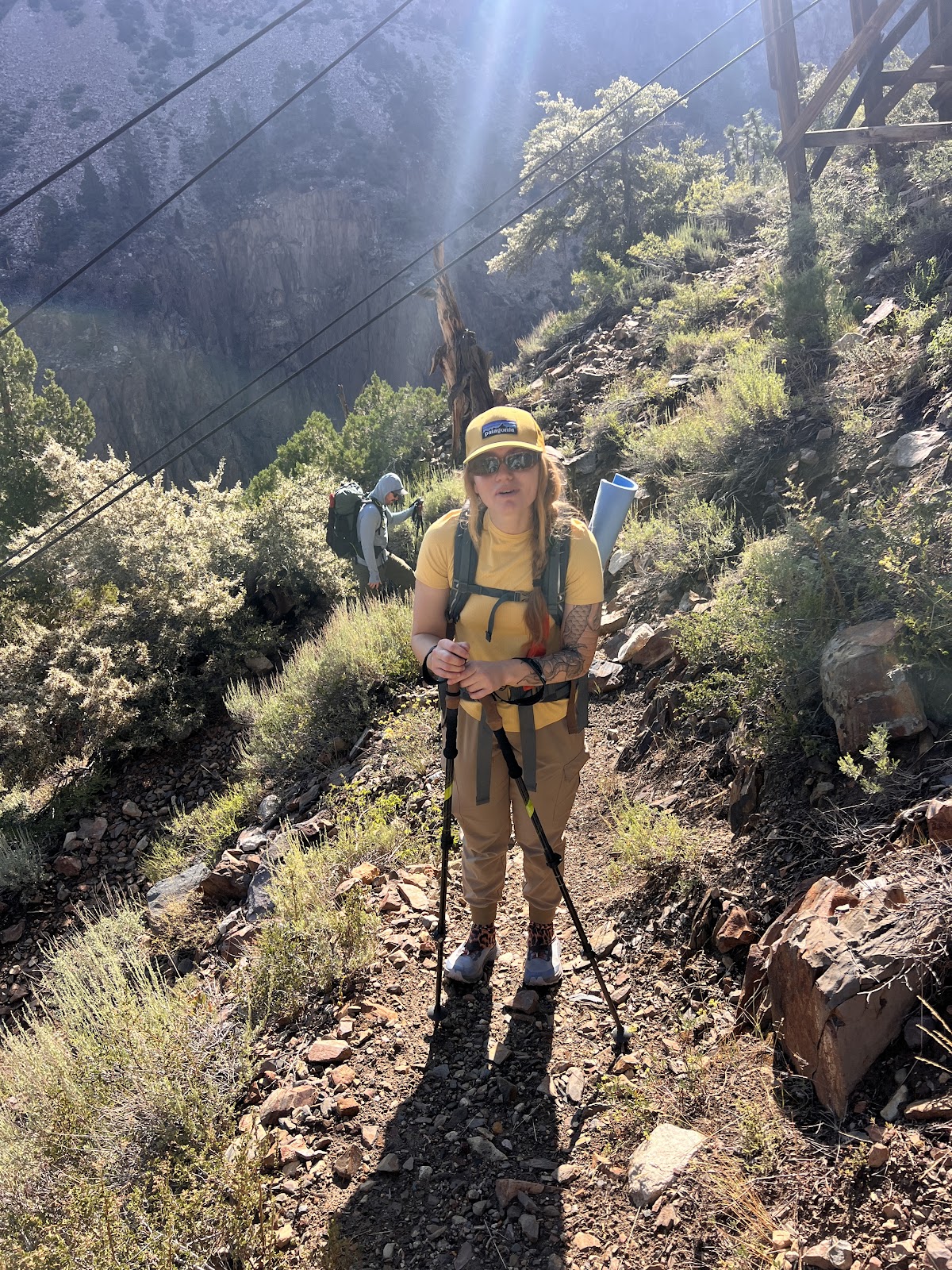 | Chandler and Bobby demonstrate how steep the trail is. |